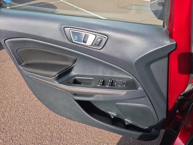 At Peruzzi, our business is you!!3.51 Axle Ratio, 4-Wheel Disc Brakes, 6 Speakers, ABS brakes, Air Conditioning, Alloy wheels, AM/FM radio: SiriusXM, AppLink/Apple CarPlay and Android Auto, Automatic temperature control, Brake assist, Bumpers: body-color, Compass, Delay-off headlights, Driver door bin, Driver vanity mirror, Dual front impact airbags, Dual front side impact airbags, Electronic Stability Control, Emergency communication system: SYNC 3 911 Assist, Equipment Group 200A, Exterior Parking Camera Rear, Front anti-roll bar, Front Bucket Seats, Front Center Armrest, Front fog lights, Front reading lights, Front wheel independent suspension, Fully automatic headlights, Heated front seats, Illuminated entry, Knee airbag, Leather Shift Knob, Leather steering wheel, Low tire pressure warning, Occupant sensing airbag, Outside temperature display, Overhead airbag, Overhead console, Panic alarm, Passenger door bin, Passenger vanity mirror, Power door mirrors, Power driver seat, Power moonroof, Power steering, Power windows, Radio data system, Radio: AM/FM Stereo w/MP3 Capable, Rear anti-roll bar, Rear Parking Sensors, Rear seat center armrest, Rear side impact airbag, Rear window defroster, Rear window wiper, Remote keyless entry, Roof rack: rails only, SiriusXM Radio, Speed control, Speed-sensing steering, Split folding rear seat, Steering wheel mounted audio controls, SYNC 3 Communications & Entertainment System, Tachometer, Telescoping steering wheel, Tilt steering wheel, Tire Inflator & Sealant Kit, Traction control, Trip computer, Turn signal indicator mirrors, Unique Cloth Heated Front Bucket Seats, Variably intermittent wipers, Wheels: 16 Shadow Silver-Painted Aluminum. Clean CARFAX. Ruby Red Metallic 2019 Ford EcoSport SE 2.0L I4 Ti-VCT GDI 6-Speed Automatic 4WD 23/29 City/Highway MPG